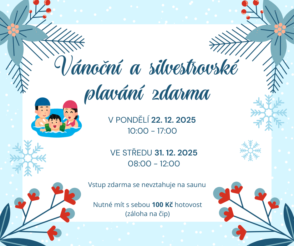 Krytý bazén – plavání veřejnosti + provoz sauny (15. 12. – 21. 12. 2025)